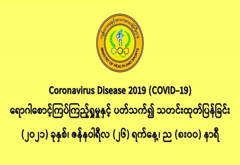 (၂၅-၁-၂၀၂၁) ရက်နေ့၊ ည (၈:၀၀) နာရီမှ (၂၆-၁-၂၀၂၁) ရက်နေ့၊ ည (၈:၀၀) နာရီ အတွင်း ဓာတ်ခွဲနမူနာ စုစုပေါင်း (၁၉,၆၆၇) ခုအားစစ်ဆေးပြီးစီးခဲ့ရာ COVID-19 ရောဂါ ဓာတ်ခွဲ အတည်ပြု လူနာသစ် (၄၁၁) ဦး တွေ့ရှိရပါသည်။