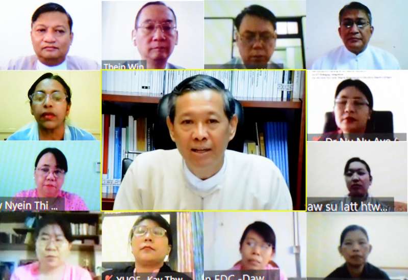 (၄၉) ကြိမ်မြောက် မြန်မာနိုင်ငံ ကျန်းမာရေးဆိုင်ရာ သုတေသနညီလာခံဖွင့်ပွဲ အခမ်း အနားကို ယနေ့နံနက်ပိုင်းတွင် ကျန်းမာရေးနှင့် အားကစားဝန်ကြီးဌာန၌ ဗီဒီယိုကွန်ဖရင့်စနစ် ဖြင့်ကျင်းပရာ ကျန်းမာရေးနှင့်အားကစားဝန်ကြီးဌာန ပြည်ထောင်စုဝန်ကြီး ဒေါက်တာ မြင့်ထွေး တက်ရောက် အဖွင့်အမှာစကား ပြောကြားသည်။