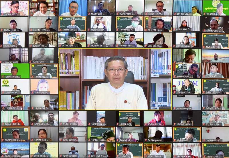 ပညာရေးဝန်ကြီးဌာန အခြေခံပညာဦးစီးဌာန ပညာရေးစီမံခန့်ခွဲမှုသင်တန်းကျောင်း(ရန်ကုန်)မှ ကိုယ်ပိုင်ကျောင်း တည်ထောင်အုပ်ချုပ်သူများအတွက် ကျောင်းစီမံအုပ်ချုပ်မှု စွမ်းရည်မြှင့်တင်ရေး သင်တန်း အမှတ်စဉ်(၁/၂၀၂၁) ဖွင့်ပွဲအခမ်းအနားကို ယနေ့ နံနက် ၉နာရီတွင် ဗီဒီယို ကွန်ဖရင့်စနစ်ဖြင့် ကျင်းပသည်။