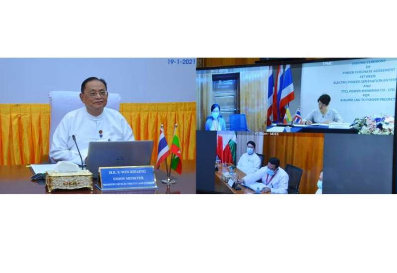 ရန်ကုန်တိုင်းဒေသကြီး အလုံဓာတ်အားပေးစက်ရုံဝင်းအတွင်း TTCL Power Myanmar Co.,Ltd. မှ အကောင်အထည်ဖော်ဆောင်ရွက်မည့် ၃၆၅ မဂ္ဂါဝပ် LNG to Power Project အတွက် ဓာတ်အား ဝယ်ယူရေးစာချုပ် ချုပ်ဆိုခြင်းအခမ်းအနားကို ယနေ့မွန်းလွဲ ၁ နာရီတွင် လျှပ်စစ်နှင့်စွမ်း အင်ဝန်ကြီးဌာန၌ ကိုဗစ်-၁၉ ကာကွယ်ရေးနည်းစနစ်များနှင့်အညီ ကျင်းပသည်။
