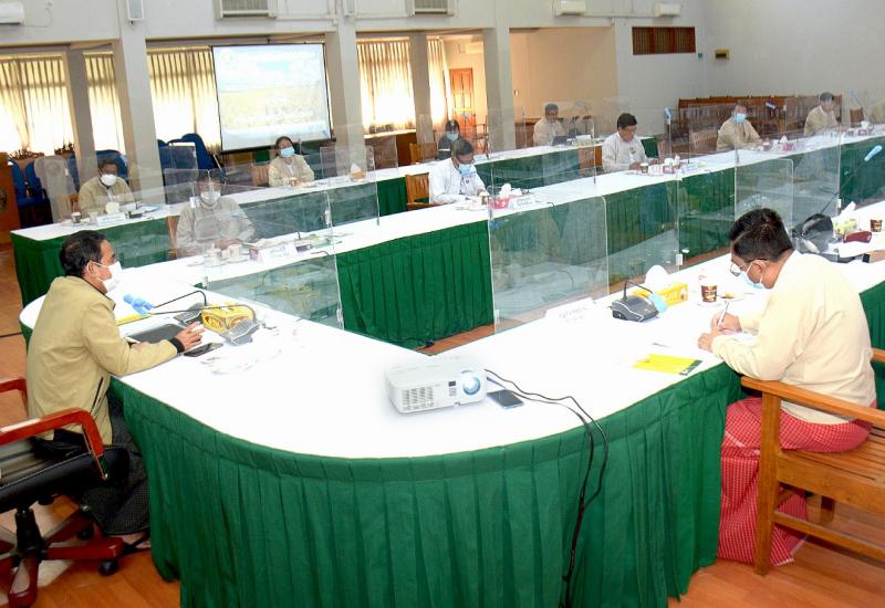 ရာသီဥတုပြောင်းလဲမှုဖြစ်စဉ်ကြောင့် ကြုံတွေ့လာရသည့် ရေရှားပါးလာမှုကို ဖြေရှင်းနိုင်ရန် ရေရရှိရေး ဆောင်ရွက်နေသော လုပ်ငန်းများနှင့် ဆောင်ရွက်သင့်သည့် လုပ်ငန်းစဉ်များဆိုင်ရာ ညှိနှိုင်းအစည်းအဝေးကို ယနေ့မွန်းလွဲပိုင်းက စိုက်ပျိုးရေး၊ မွေးမြူရေးနှင့် ဆည်မြောင်း ဝန်ကြီးဌာန ပြည်ထောင်စုဝန်ကြီးရုံး အစည်းအဝေးခန်းမ၌ ကိုဗစ်-၁၉ တားဆီးကာကွယ်ရေး ဆိုင်ရာ ညွှန်ကြားချက်များနှင့်အညီ ကျင်းပသည်။