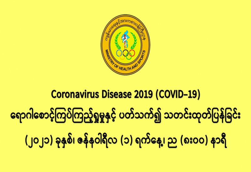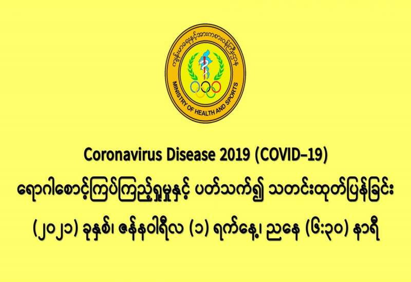 (၃၁-၁၂-၂၀၂၀) ရက်နေ့၊ ည (၈:၀၀) နာရီမှ (၁-၁-၂၀၂၁) ရက်နေ့၊ ည (၈:၀၀) နာရီ အတွင်း ဓာတ်ခွဲနမူနာ စုစုပေါင်း (၁၅,၇၃၅) ခုအား စစ်ဆေးပြီးစီးခဲ့ရာ COVID-19 ရောဂါ ဓာတ်ခွဲအတည်ပြု လူနာသစ် (၄၁၂) ဦး တွေ့ရှိရပါသည်။