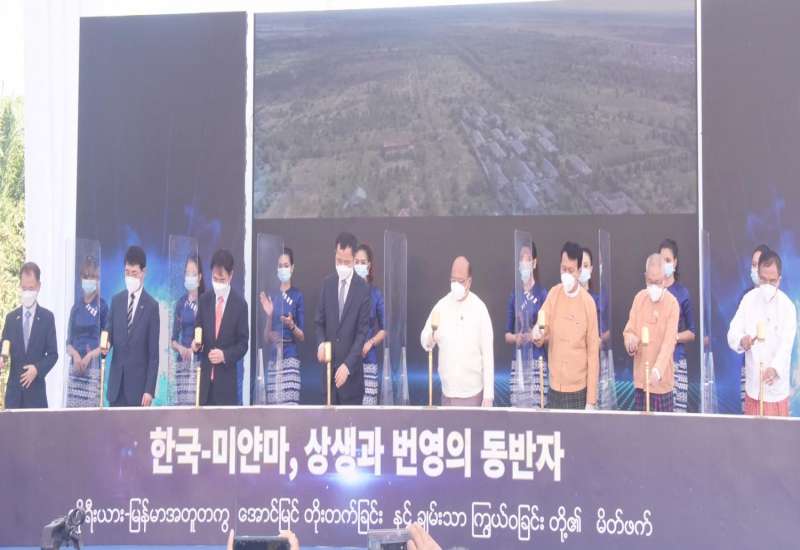 ကိုရီးယား-မြန်မာစက်မှုဇုန်စီမံကိန်း (Korea-Myanmar Industrial complex, KMIC) ပန္နက်တင် အခမ်းအနားကို ယနေ့နံနက်ပိုင်းတွင် ရန်ကုန်တိုင်းဒေသကြီး၊ လှည်းကူးမြို့နယ်ရှိ စီမံကိန်း ဧရိယာ၌ ကျန်းမာရေးနှင့်အားကစား ဝန်ကြီးဌာန၏ COVID-19 ကာကွယ်ထိန်းချုပ် ခြင်းဆိုင်ရာ လမ်းညွှန်ချက်များနှင့်အညီ ကျင်းပသည်။