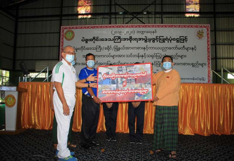 ပဲခူးမြို့ ရွှေမော်ဓောဘုရားလမ်းရှိ ပဲခူးတိုင်းဒေသကြီးအားကစားခန်းမတွင် နိုဝင်ဘာ ၁၂ရက် နံနက် ၁၀ နာရီက ပဲခူးတိုင်းဒေသကြီးအစိုးရအဖွဲ့ ခွင့်ပြုရံပုံငွေဖြင့် ဝယ်ယူထားသည့် သင်တန်း နှင့် သရုပ်ပြပွဲသုံး ပစ္စည်းများ၊ အားကစားအထောက်အကူပြုပစ္စည်းများ၊ လေ့ကျင့်ရေးနှင့် ပြိုင်ပွဲသုံး အားကစားပစ္စည်းများအား တိုင်း၊ ခရိုင်၊ မြို့နယ်အားကစားနှင့် ကာယပညာ ကော်မတီ များနှင့် အားကစားကလပ်များထံသို့ ထောက်ပံ့ ပေးအပ်ပွဲ အခမ်းအနား ကျင်းပခဲ့သည်။