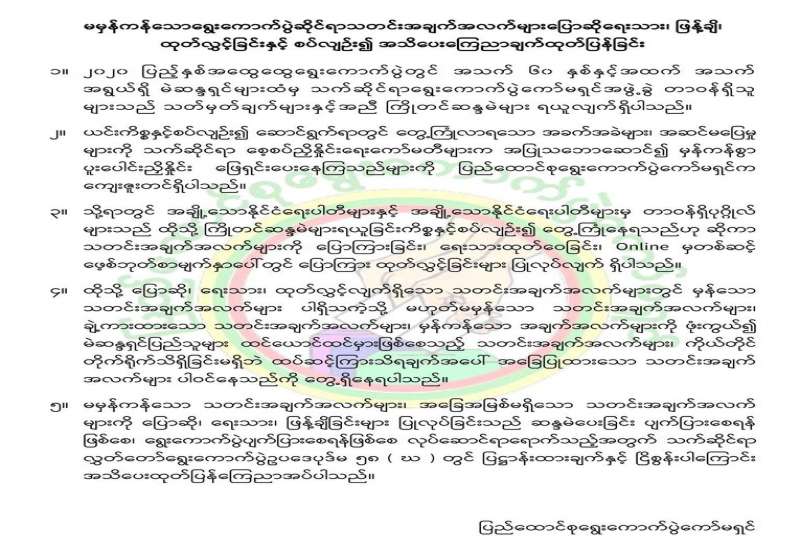 နိုဝင်ဘာ ၈ ရက်တွင် ကျင်းပမည့် ပါတီစုံဒီမိုကရေစီအထွေထွေရွေးကောက်ပွဲအတွက် ကြိုတင် ဆန္ဒမဲပေး ပိုင်ခွင့် ရှိသူများအနေဖြင့် အောက်တိုဘာ ၂၉ ရက်မှစတင်၍ တစ်နိုင်ငံလုံးအတိုင်း အတာဖြင့် ကိုဗစ်-၁၉ ရောဂါ ကာကွယ်ထိန်းချုပ်ရေးလမ်းညွှန်ချက်များနှင့်အညီ ကြိုတင်ဆန္ဒမဲ ပေးလျက်ရှိကြသည်။