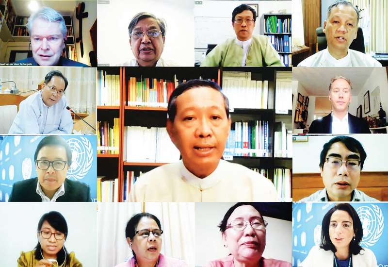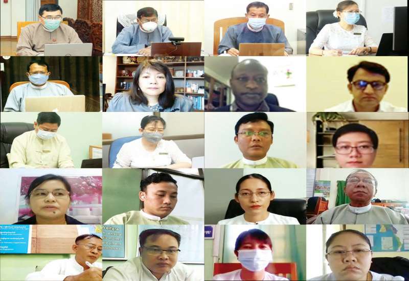 ကိုဗစ်-၁၉ ကူးစက်ရောဂါဖြစ်ပွားမှုနှုန်း မြင့်မားနေသည့်ကာလအတွင်း ဘိုးဘွားရိပ်သာများတွင် လက်ခံ စောင့်ရှောက်ထားသော သက်ကြီးရွယ်အိုများအား စနစ်တကျပြုစုစောင့်ရှောက်ရေးနှင့် စပ်လျဉ်းသည့် အစည်းအဝေးကို ယနေ့နံနက်ပိုင်းတွင် ဗီဒီယိုကွန်ဖရင့် စနစ်ဖြင့် ကျင်းပသည်။