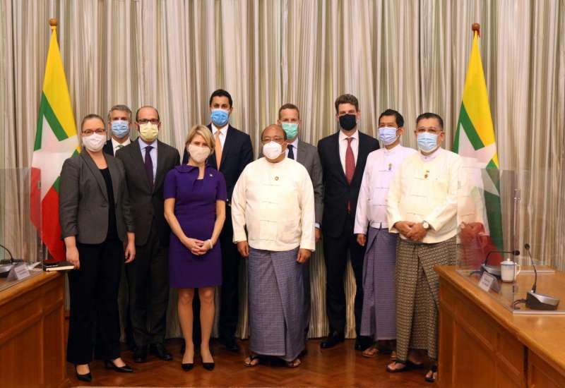 ရင်းနှီးမြှုပ်နှံမှုနှင့် နိုင်ငံခြားစီးပွားဆက်သွယ်ရေးဝန်ကြီးဌာန ပြည်ထောင်စုဝန်ကြီး ဦးသောင်းထွန်းသည် အမေရိကန် နိုင်ငံတကာဖွံ့ဖြိုးမှု ဘဏ္ဍာရေးကော်ပိုရေးရှင်း (ဒီအက်ဖ်စီ)၏ အမှုဆောင်အရာရှိချုပ် အက်ဒမ်ဘိုးလား ဦးဆောင်သော အမေရိကန် အစိုးရ ကိုယ်စားလှယ်အဖွဲ့ကို ယနေ့နံနက် ၁၁ နာရီတွင် ရင်းနှီးမြှုပ်နှံမှုနှင့် နိုင်ငံခြား စီးပွားဆက်သွယ်ရေးဝန်ကြီးဌာန၌ လက်ခံတွေ့ဆုံသည်။