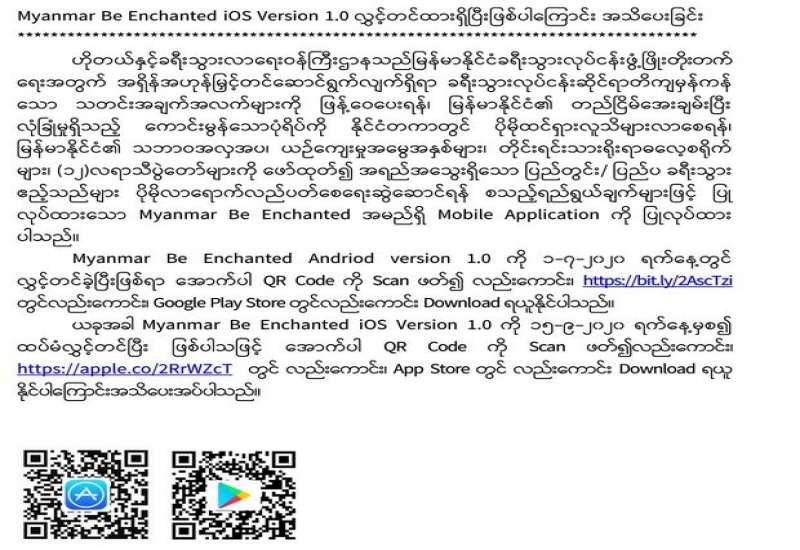 ဟိုတယ်နှင့်ခရီးသွားလာရေးဝန်ကြီးဌာနသည်မြန်မာနိုင်ငံခရီးသွားလုပ်ငန်းဖွံ့ဖြိုးတိုးတက် ရေးအတွက် အရှိန်အဟုန်မြှင့်တင်ဆောင်ရွက်လျက်ရှိရာ ခရီးသွားလုပ်ငန်းဆိုင်ရာတိကျမှန်ကန် သော သတင်းအချက်အလက်များကို ဖြန့်ဝေပေးရန်၊ မြန်မာနိုင်ငံ၏