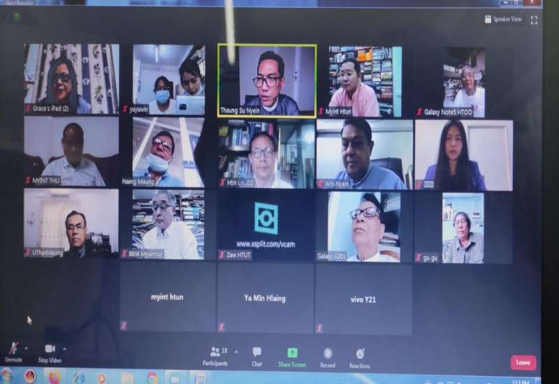 စာပေမူပိုင်ခွင့်ဆိုင်ရာ စုပေါင်းစီမံခန့်ခွဲသည့် အဖွဲ့အစည်းဖြစ်မြောက်ရေးကော်မတီ ပထမအကြိမ် လုပ်ငန်းညှိနှိုင်း အစည်းအဝေးကို ယနေ့မွန်းလွဲ ၂ နာရီအချိန်တွင် Video Conferencing စနစ်ဖြင့် ကျင်းပရာဖြစ်မြောက်ရေးကော်မတီ ဥက္ကဋ္ဌ ဉီးကျော်စွာ (ချစ်ဉီးညို) ၊ ဒုတိယဥက္ကဋ္ဌများဖြစ်ကြသည့် ဦးမြင့်ထွန်း၊ ဦးသောင်းစုငြိမ်းနှင့် အဖွဲ့ဝင်များ တက်ရောက်ဆွေးနွေးကြသည်။