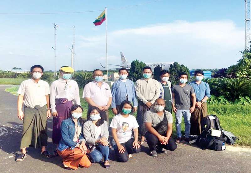 ရခိုင်ပြည်နယ် စစ်တွေ၊ ပေါက်တောနှင့် မာန်အောင်မြို့တို့တွင် ကိုဗစ် - ၁၉ ရောဂါ ကာကွယ်၊ ကုသ၊ ထိန်းချုပ်ရေး လုပ်ငန်းများ၌ “မိမိဆန္ဒ အလျောက်” တွဲဖက်တာဝန်ထမ်းဆောင်မည့် ဆရာ ဝန်နှင့် သူနာပြုများသည် ယနေ့ နံနက်ပိုင်းတွင် မြန်မာအမျိုးသား ပိုင် လေကြောင်းလိုင်းမှ အထူးလေယာဉ် ဖြင့် စစ်တွေမြို့သို့ ရောက်ရှိကြသည်။