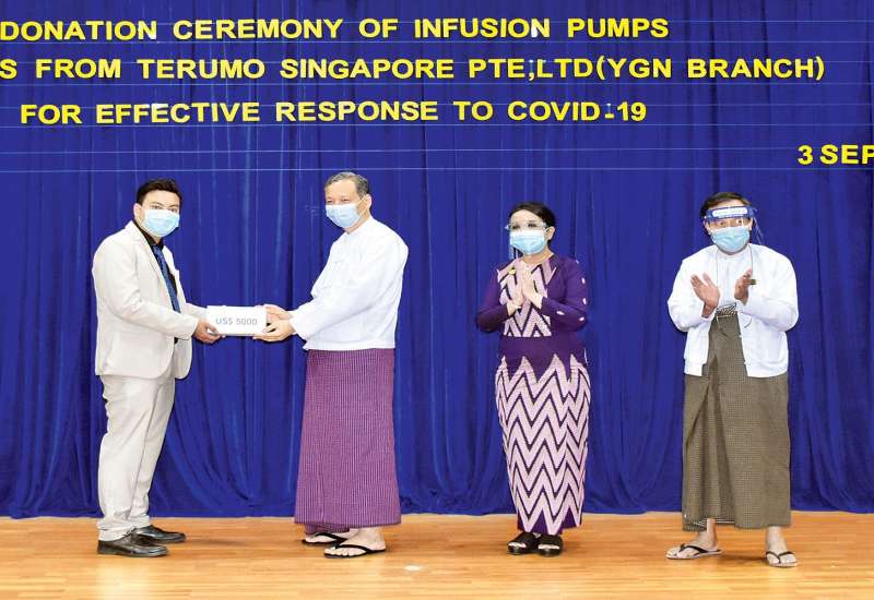 ကျန်းမာရေးနှင့် အားကစားဝန်ကြီး ဌာနသို့ TERUMO SINGAPORE PTE, LTD (ရန်ကုန်ရုံးခွဲ)မှ အကြောဆေး သွင်းရာတွင် ထိန်းညှိပေးသော စက် (Infusion Pumps) ငါးလုံး ပေးအပ်လှူဒါန်းပွဲ အခမ်းအနားကို ယနေ့ မွန်းလွဲ ၃ နာရီတွင် ရန်ကုန်မြို့ ဒဂုံမြို့နယ် ဇီဝကလမ်းရှိ ဆေးသုတေ သနဦးစီးဌာန(ရုံးချုပ်) အစည်းအဝေး ခန်းမ၌ ကျင်းပသည်။