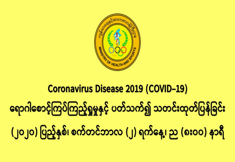 မြန်မာနိုင်ငံတွင် သြဂုတ်လ ၃၁ ရက် ညပိုင်းနှင့် စက်တင်ဘာလ ၁ ရက်နေ့ နံနက်ပိုင်း နောက်ဆုံးဓာတ်ခွဲစစ်ဆေးချက်များအရ ကိုရိုနာဗိုင်းရပ်စ်ပိုး ကူးစက်ခံရသူဦးရေ ၁၀၀ ပေါ်ထွက်ခဲ့ပြီး အတည်ပြုလူနာ စံချိန်ကျိုးခဲ့ပါသည်။ ထို ၁၀၀ ထဲတွင် ၁၈ ဦးသည် သြဂုတ်လအတွင်း ရခိုင်ပြည်နယ်နှင့် ပြည်ပခရီးသွား ရာဇဝင်မရှိသူများ၊ ပိုးတွေ့ အတည်ပြုလူနာနှင့် ထိတွေ့မှု မရှိသူများ ဖြစ်နေသည်။