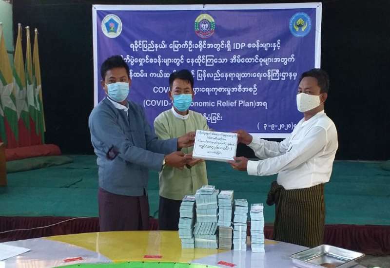 ကိုဗစ်-၁၉ စီးပွားရေးကုစားမှု အစီအစဉ် (COVID-19 Economic Relief Plan-CERP) အရ ရခိုင် ပြည်နယ်အတွင်းရှိ IDP တိုက်ပွဲရှောင် စခန်းများမှ နေရပ်စွန့်ခွာအိမ်ထောင်စု များအား စားသောက်ကုန်ငါးမျိုး ဝယ်ယူရန် အိမ်ထောင်စုတစ်စုလျှင် ငွေကျပ် ၄၀၀၀ဝ နှုန်းဖြင့် ထောက်ပံ့ နိုင်ရေးအတွက် လူမှုဝန်ထမ်း၊ ကယ်ဆယ်ရေးနှင့် ပြန်လည်နေရာချထားရေးဝန်ကြီးဌာန ပြည်ထောင်စုဝန်ကြီး က ရခိုင်ပြည်နယ်ဝန်ကြီးချုပ် ဦးဆောင်သည့် ရခိုင်ပြည်နယ် အစိုးရအဖွဲ့သို့ ထောက်ပံ့ငွေလွှဲပြောင်း ပေးအပ်ပွဲအခမ်းအနားကို ဩဂုတ် ၂၁ ရက်တွင် Virtual Meeting ဖြင့် ကျင်းပ ခဲ့သည်။