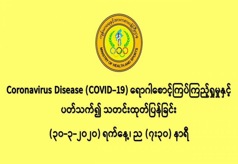 ၁။ မြန်မာနိုင်ငံ၌ (၂၉-၃-၂၀၂၀) ရက်နေ့အထိ COVID-19 ရောဂါပိုး‌တွေ့ရှိသူ (၁၀) ဦး ရှိလာပြီး၊ ၎င်းတို့အနက် အသက်(၄၄) နှစ်အရွယ် မြန်မာနိုင်ငံသား အမျိုးသား တစ်ဦးသည် (၂၃-၃-၂၀၂၀) ရက်နေ့တွင် ထိုင်းနိုင်ငံမှ မြန်မာနိုင်ငံသို့ မြဝတီနယ်စပ်ဂိတ်မှတစ်ဆင့် ဝင်ရောက်ကာ မင်္ဂလာဒုံမြို့နယ်သို့ ရောက်ရှိနေထိုင်ခဲ့ပြီး (၂၉-၃-၂၀၂၀) ရက်နေ့ ဓါတ်ခွဲနမူနာအဖြေအရ COVID-19 ရောဂါပိုး ရှိကြောင်း စစ်ဆေးတွေ့ရှိရပါသည်။