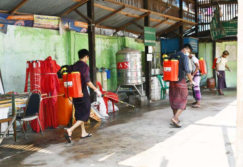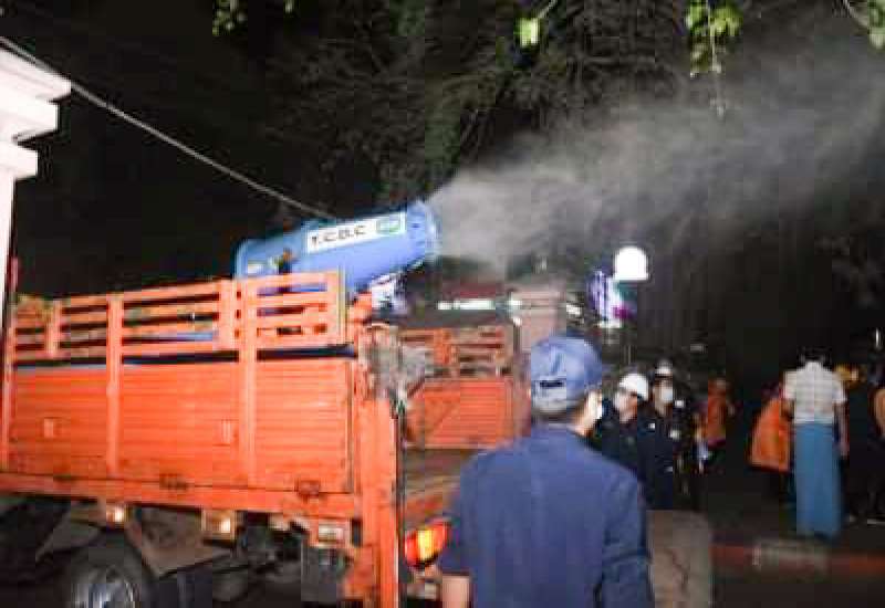 ရန်ကုန်မြို့တော်စည်ပင်သာယာရေးကော်မတီ ပတ်ဝန်းကျင်ထိန်းသိမ်းရေးနှင့် သန့်ရှင်းရေးဌာနမှ ဌာနမှူး ဦးဆောင်၍ ယမန်နေ့ည ၉ နာရီက ကိုရိုနာဗိုင်းရပ်(စ်)ရောဂါ ကာကွယ်ထိန်းချုပ်နိုင်ရေးနှင့် ကြိုတင်ကာကွယ်နိုင်ရေးအတွက် ရန်ကုန်ပြည်သူဆေးရုံကြီး အတွင်းအပြင် နေရာများဆေးဖျန်းရာ စည်ပင်သာယာရေးဝန်ကြီး ရန်ကုန်မြို့တော်ဝန် ဦးမောင်မောင်စိုး၊ ဒုတိယမြို့တော်ဝန် ဦးစိုးလွင်နှင့် တာဝန်ရှိသူများက ကြည့်ရှုစစ်ဆေးခဲ့ကြသည်။