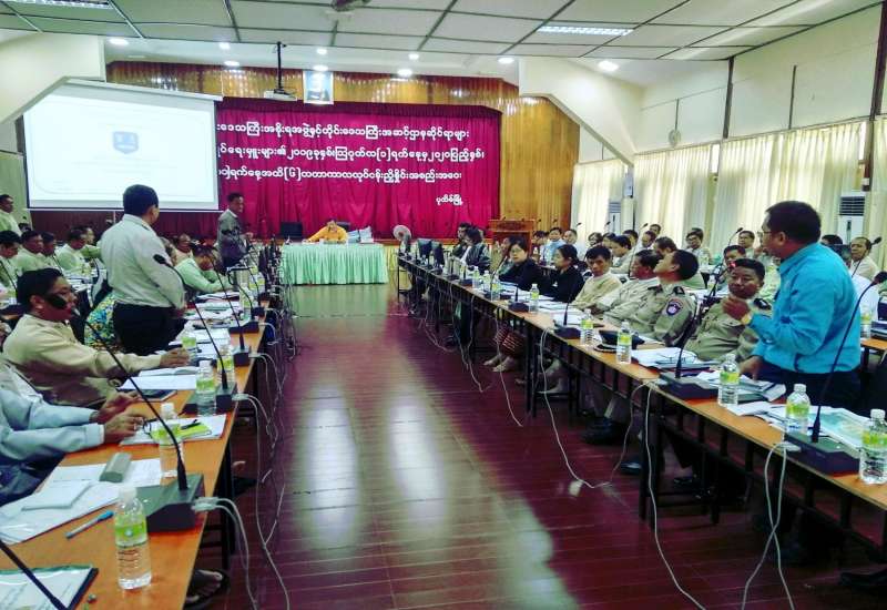 ဧရာဝတီတိုင်းဒေသကြီး ပုသိမ်မြို့တွင် ဧရာဝတီတိုင်းဒေသကြီး အစိုးရအဖွဲ့နှင့် တိုင်းအဆင့် ဌာနဆိုင်ရာများ၊ တက္ကသိုလ်၊ ကောလိပ်၊ သင်တန်းကျောင်းများ၊ စက်ရုံမှူးများ၊ ခရိုင်နှင့်မြို့နယ် အုပ်ချုပ်ရေးမှူးများ၏ ၂၀၁၉ ခုနှစ် သြဂုတ်လ ၁ ရက်နေ့မှ ၂၀၂၀ ပြည့်နှစ် ဇန်နဝါရီလ ၃၁ ရက်နေ့အထိ ၆ လတာကာလအတွင်း လုပ်ငန်းညှိနှိုင်း အစည်းအဝေးကို ယနေ့နံနက်ပိုင်းက ဧရာရွှေဝါခန်းမ၌ ကျင်းပရာ တိုင်းဒေသကြီးဝန်ကြီးချုပ် ဦးလှမိုးအောင် တက်ရောက်အမှာစကားပြောကြားသည်။