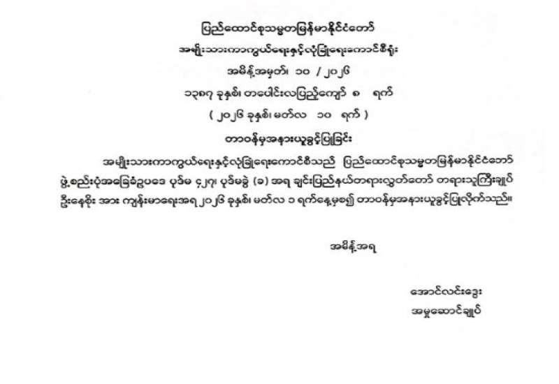 မြန်မာနိုင်ငံတော်ဗဟိုဘဏ် ဒုတိယဥက္ကဋ္ဌ ခန့်အပ်တာဝန်ပေးခြင်း
