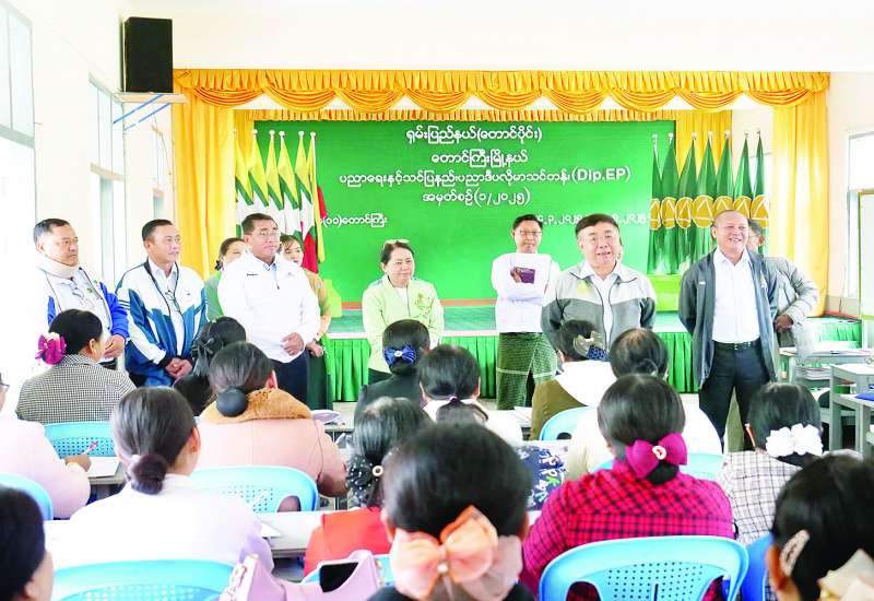 နေပြည်တော်ကောင်စီဥက္ကဋ္ဌ ဦးသန်းထွန်းဦးသည် တာဝန်ရှိသူများနှင့်အတူ ယမန်နေ့မွန်းလွဲပိုင်းက ၂၀၂၅ ခုနှစ် တက္ကသိုလ်ဝင်စာမေးပွဲ ပြန်လည်ဖြေဆိုမည့် ကျောင်းသားကျောင်းသူများအား စခန်းသွင်းလေ့ကျင့်သင်ကြားနေမှု အခြေအနေများကို လှည့်လည်ကြည့်ရှုစစ်ဆေးသည်။