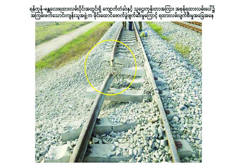 ယနေ့ နံနက် ၇ နာရီအချိန် ကျောက်တံခါးဘူတာမှ ထွက်ခွာလာသော အမှတ် (၉၀၂) အစုန်ကုန်ရထားသည် ရန်ကုန် - မန္တလေးရထားလမ်းပိုင်းအတွင်းရှိ ပဲခူးတိုင်းဒေသကြီး ကျောက်တံခါးမြို့နယ် ကျောက်တံခါးဘူတာနှင့် သူဌေးကုန်းဘူတာအကြား၊ မိုင်တိုင်အမှတ် ၁၀၇/၄-၅ နေရာသို့ ရောက်ရှိချိန်တွင် အစုန်ရထားလမ်းပေါ်၌ အကြမ်းဖက်သောင်းကျန်းသူအဖွဲ့က ထောင်ထားသည့် မိုင်းပေါက်ကွဲမှုကြောင့် အစုန်ရထားလမ်း ထိခိုက်ပျက်စီးနေကြောင်း တွေ့ရှိရသဖြင့် ကျောက်တံခါးဘူတာသို့ ပြန်လည်ဆုတ်ခွာခဲ့ရပြီး ကျောက်တံခါးနှင့် သူဌေးကုန်းရထားလမ်းပိုင်းအား နံနက် ၇ နာရီ ၂၆ မိနစ်တွင် ယာယီပိတ်ထားခဲ့ရကြောင်း သတင်းရရှိသည်။
