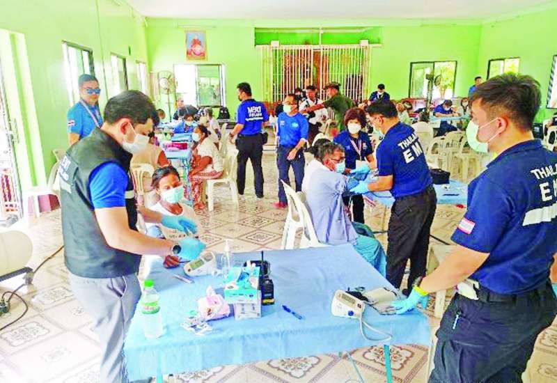 မန္တလေးတိုင်းဒေသကြီး ကျောက်ဆည်မြို့တွင် ထိုင်းတော်ဝင်လေတပ်မှ Col. Suthawut Naksri ဦးဆောင်သော ဆေးကုသရေးအဖွဲ့သည် ယနေ့နံနက်ပိုင်းက ဆူးကုန်းရပ်ကွက်ရှိ မဟာဝိသုတာရာမကျောင်းတိုက်တွင် ငလျင်ဘေးသင့်ပြည်သူများအား ဆေးဝါးများကုသပေးလျက်ရှိကြောင်း သိရသည်။