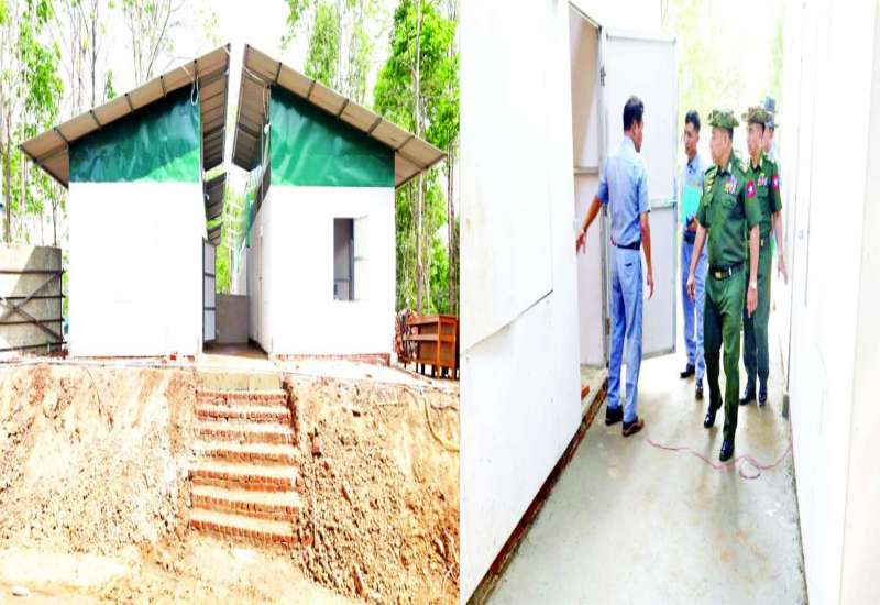 နိုင်ငံတော်စီမံအုပ်ချုပ်ရေးကောင်စီအဖွဲ့ဝင် နယ်စပ်ရေးရာဝန်ကြီးဌာန ပြည်ထောင်စုဝန်ကြီး ဒုတိယဗိုလ်ချုပ်ကြီးရာပြည့်သည် ဒုတိယဝန်ကြီး ဗိုလ်ချုပ်ဖြိုးသန့်၊ အမြဲတမ်းအတွင်းဝန်၊ တာဝန်ရှိသူများနှင့်အတူ ယနေ့နံနက်ပိုင်းတွင် နယ်စပ်ရေးရာဝန်ကြီးဌာန ရုံးမြေဧရိယာအတွင်း၌ ငလျင်ဘေးကြောင့် ထိခိုက်ခံစားခဲ့ရသည့် ဝန်ထမ်းများနှင့် မိသားစုများနေထိုင်ရန်အတွက် ဝန်ကြီးဌာန အင်ဂျင်နီယာအဖွဲ့က ကြီးကြပ်ကွပ်ကဲမှုဖြင့် တည်ဆောက်နေသည့် Steel Structure ယာယီအဆောက်အအုံများ တည်ဆောက်ပြီးစီးမှုနှင့် အဆိုပါ ယာယီအဆောက်အအုံများအတွင်း ဝန်ထမ်းများနေထိုင်နေမှု အခြေအနေကို ကြည့်ရှုစစ်ဆေးသည်။