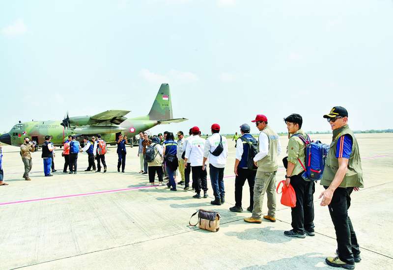 အင်ဒိုနီးရှားနိုင်ငံ ဆေးဘက်ဆိုင်ရာ အရေးပေါ်ကယ်ဆယ်ရေးအဖွဲ့မှ Police Brigadier General (Retired) Ary Laksmana Widjaja ခေါင်းဆောင်သော အဖွဲ့ဝင် ၄၁ ဦးတို့သည် ယနေ့နံနက်ပိုင်းတွင် လေကြောင်းခရီးစဉ်နှစ်ခုဖြင့် အင်ဒိုနီးရှားနိုင်ငံသို့ ပြန်လည်ထွက်ခွာကြရာ အမျိုးသားသဘာဝဘေးအန္တရာယ်ဆိုင်ရာ စီမံခန့်ခွဲမှုကော်မတီမှ တာဝန်ရှိသူများ၊ မြန်မာနိုင်ငံဆိုင်ရာ အင်ဒိုနီးရှားသံရုံးမှ သံမှူးကြီး Harlianto နှင့် အင်ဒိုနီးရှားစစ်သံမှူး Col (Mar) Budi Chayono တို့က နေပြည်တော်လေဆိပ်၌ ပို့ဆောင်နှုတ်ဆက်ကြသည်။