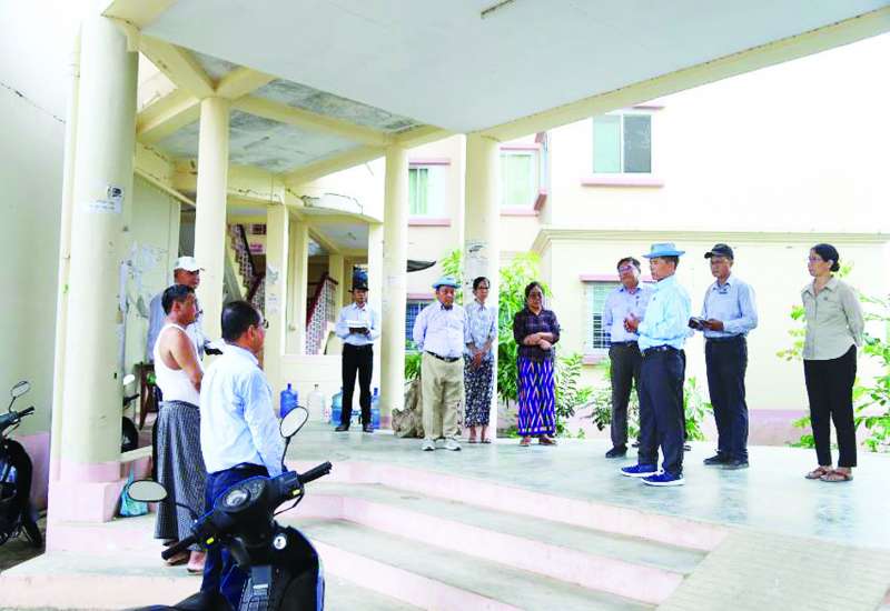 မြန်မာနိုင်ငံအိုလံပစ်ကော်မတီဥက္ကဋ္ဌ အားကစားနှင့်လူငယ်ရေးရာဝန်ကြီးဌာန ပြည်ထောင်စုဝန်ကြီး Jeng Phang နော်တောင်သည် ဒုတိယဝန်ကြီးများ၊ ညွှန်ကြားရေးမှူးချုပ်များ၊ တာဝန်ရှိသူများနှင့်အတူ ယနေ့နံနက်ပိုင်းတွင် မတ် ၂၈ ရက်၌ လှုပ်ခတ်ခဲ့သည့် ပြင်းထန်ငလျင်ဒဏ်ကြောင့် ထိခိုက်ပျက်စီးခဲ့သော အဆာက်အအုံများကို သက်ဆိုင်ရာဌာနများမှ ကျွမ်းကျင်ပညာရှင်များက စစ်ဆေးအတည်ပြုပြီး လိမ္မော်ရောင်အဆင့် သတ်မှတ်ထားသည့် ဝန်ထမ်းအိမ်ရာများအား တတိယအကြိမ် လိုက်လံကြည့်ရှုစစ်ဆေးသည်။