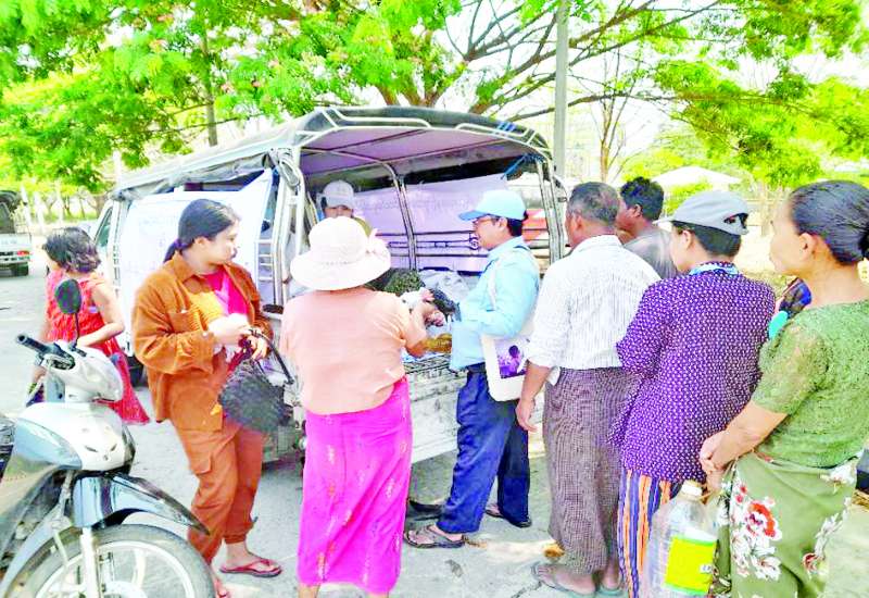 စီးပွားရေးနှင့်ကူးသန်းရောင်းဝယ်ရေးဝန်ကြီးဌာနနှင့် မြန်မာနိုင်ငံ ကုန်သည်များနှင့် စက်မှုလက်မှုလုပ်ငန်းရှင်များအသင်းချုပ်(UMFCCI)တို့၏ စီစဉ်မှု ဖြင့် ဆန်၊ ဆီ၊ ပဲ၊ ဆား၊ ငါးပိနှင့် ကုန်မျိုးစုံဈေးကားများသည် ပြည်ထောင်စုနယ်မြေ နေပြည်တော်အတွင်း ငလျင်ဒဏ်သင့်ဝန်ထမ်းအိမ်ရာများသို့ မတ် ၃၀ ရက် မှစ၍ အိမ်တိုင်ရာရောက်သွားရောက်ကာ သက်သာသောဈေးနှုန်းများဖြင့် ရောင်းချပေးလျက်ရှိပြီး ယနေ့တွင် ၁၆ ရက်မြောက်နေ့အဖြစ်ဈေးကား ခုနစ်စီးဖြင့် လှည့်လည်ရောင်းချပေးကြောင်း သိရသည်။