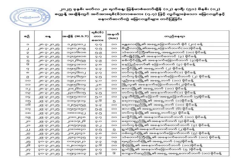 ၂၀၂၅ ခုနှစ်၊ မတ်လ ၂၈ ရက်နေ့၊ မြန်မာစံတော်ချိန်(၁၂)နာရီ၊ (၅၁)မိနစ်၊ (၀၂) စက္ကန့်အချိန်တွင် အင်အားရစ်(ခ်)တာစကေး (၇.၇) ဖြင့် လှုပ်ရှားခဲ့သော မေငလျင်နှင့် နောက်ဆက်တွဲ မြေငလျင်များ တင်ပြခြင်း