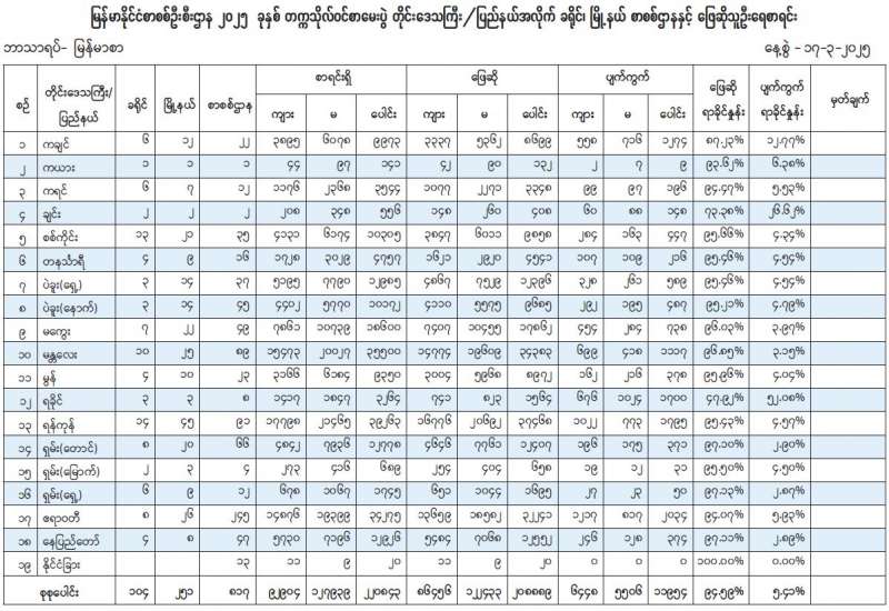 ၂၀၂၅ ခုနှစ် တက္ကသိုလ်ဝင်စာမေးပွဲ ပထမနေ့ကို ယနေ့နံနက်ပိုင်းက စတင်ကျင်းပရာ နိုင်ငံခြားစာစစ်ဌာန အပါအဝင် တစ်နိုင်ငံလုံးအတိုင်းအတာဖြင့် မြန်မာစာဘာသာရပ် လာရောက်ဖြေဆိုသူ စုစုပေါင်း ၂၀၈၈၈၉ ဦးရှိကြောင်း သိရသည်။