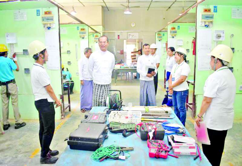 အလုပ်သမားဝန်ကြီးဌာန ဒုတိယဝန်ကြီးဦးဝင်းရှိန်သည် ယနေ့နံနက်ပိုင်းတွင် ရန်ကုန်တိုင်းဒေသကြီး မင်္ဂလာဒုံမြို့နယ်ရှိ Kabar Training Center သို့သွားရောက်၍ ပိုက်ဆက်နှင့် ကျောက်ပုံးရိုက် သင်တန်းများဖွင့်လှစ်ပို့ချနေမှုကို ကြည့်ရှုအားပေးသည်။