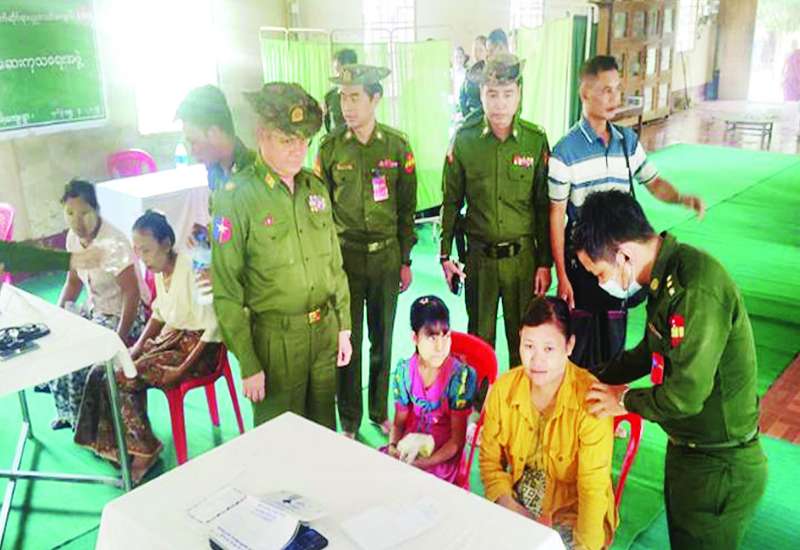 ရန်ကုန်တိုင်းဒေသကြီး မှော်ဘီမြို့နယ် ဓမ္မရေအေးကံကလေး ကျေးရွာအုပ်စုရှိ သံဃာတော်များနှင့် ဒေသခံပြည်သူများအား ယနေ့နံနက်ပိုင်းတွင် ရန်ကုန်တိုင်းစစ်ဌာနချုပ် နယ်လှည့်ဆေးကုသရေးအဖွဲ့က အဆိုပါကျေးရွာရှိ ကံကလေးကျောင်းတိုက်၌ ကျန်းမာရေးစောင့်ရှောက်မှုလုပ်ငန်းများ ဆောင်ရွက်ပေးသည်။