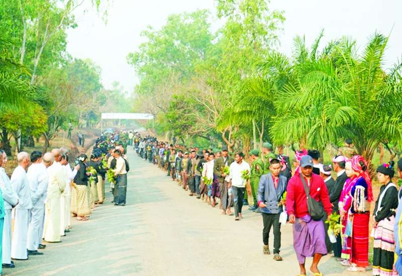 ရှမ်းပြည်နယ်အတွင်းရှိ ပြည်သူ့စစ်မှုထမ်းသင်တန်းအမှတ်စဉ် (၁၁) သို့ တက်ရောက်ကြမည့် နိုင်ငံ့သားကောင်းရတနာများအား ကြိုဆိုပွဲကို ယနေ့နံနက်ပိုင်းတွင် ကျိုင်းတုံမြို့ရှိ နယ်မြေခံသင်တန်းကျောင်း၌ပြုလုပ်ရာ တြိဂံဒေသတိုင်းစစ်ဌာနချုပ် တိုင်းမှူးဗိုလ်မှူးချုပ်စိုးလှိုင်နှင့် တာဝန်ရှိသူများ၊ အရာရှိ၊ စစ်သည်၊ မိသားစုဝင်များ၊ မြန်မာနိုင်ငံရဲတပ်ဖွဲ့ဝင်များ၊ စစ်မှုထမ်းဟောင်းအဖွဲ့ဝင်များ၊ ဌာနဆိုင်ရာတာဝန်ရှိသူများ၊ တိုင်းရင်းသားယဉ်ကျေးမှုအဖွဲ့များနှင့် ဒေသခံတိုင်းရင်းသားပြည်သူများ တက်ရောက်ကြသည်။