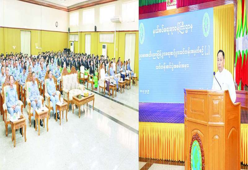 နယ်စပ်ရေးရာဝန်ကြီးဌာန ဥပဒေအသိပညာပြန့်ပွားရေး ဆင့်ပွားသင်တန်းအမှတ်စဉ် (၂) သင်တန်းဆင်းပွဲအခမ်းအနားကို ယနေ့နံနက်ပိုင်းတွင် နယ်စပ်ရေးရာဝန်ကြီးဌာန ဧရာဝတီခန်းမ၌ကျင်းပရာ နိုင်ငံတော်စီမံအုပ်ချုပ်ရေးကောင်စီအဖွဲ့ဝင် နယ်စပ်ရေးရာဝန်ကြီးဌာန ပြည်ထောင်စုဝန်ကြီး ဒုတိယဗိုလ်ချုပ်ကြီး ရာပြည့်၊ ဒုတိယဝန်ကြီး ဗိုလ်ချုပ် ဖြိုးသန့်၊ အမြဲတမ်းအတွင်းဝန်၊ ညွှန်ကြားရေးမှူးချုပ်၊ ဝန်ကြီးရုံးနှင့် ဦးစီးဌာနများမှ အရာထမ်း၊ အမှုထမ်းများ၊ သင်တန်းနည်းပြများနှင့် သင်တန်းသား သင်တန်းသူများ တက်ရောက်ကြသည်။