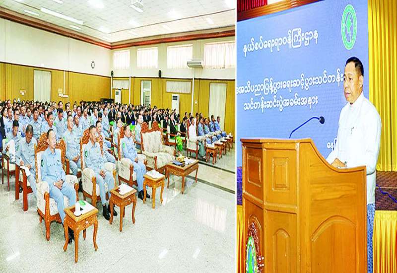 နယ်စပ်ရေးရာဝန်ကြီးဌာန ဥပဒေအသိပညာပြန့်ပွားရေး ဆင့်ပွားသင်တန်း သင်တန်းဆင်းပွဲအခမ်းအနားကို ယနေ့နံနက်ပိုင်းတွင် နယ်စပ်ရေးရာဝန်ကြီးဌာန ဧရာဝတီခန်းမ၌ကျင်းပရာ နိုင်ငံတော် စီမံအုပ်ချုပ်ရေးကောင်စီအဖွဲ့ဝင် နယ်စပ်ရေးရာ ဝန်ကြီးဌာန ပြည်ထောင်စုဝန်ကြီး ဒုတိယဗိုလ်ချုပ်ကြီးရာပြည့်၊ ဒုတိယဝန်ကြီး ဗိုလ်ချုပ်ဖြိုးသန့်၊ အမြဲတမ်းအတွင်းဝန်၊ ဌာနဆိုင်ရာ တာဝန်ရှိသူများ၊ သင်တန်းနည်းပြများနှင့် သင်တန်းသားသင်တန်းသူများ တက်ရောက်ကြသည်။