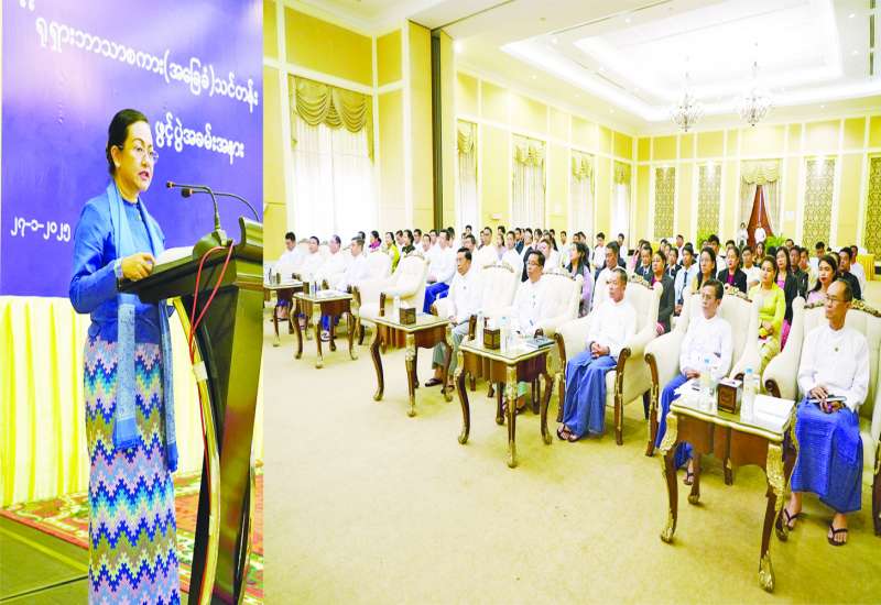နယ်စပ်ရေးရာဝန်ကြီးဌာန ဥပဒေအသိပညာ ပြန့်ပွားရေး ဆင့်ပွားသင်တန်းဖွင့်ပွဲကို ယနေ့နံနက်ပိုင်းတွင် နေပြည်တော်ရှိ နယ်စပ်ရေးရာဝန်ကြီးဌာန ဧရာဝတီခန်းမ၌ကျင်းပရာ နယ်စပ်ရေးရာဝန်ကြီးဌာန ဒုတိယဝန်ကြီး ဗိုလ်ချုပ်ဖြိုးသန့်၊ အမြဲတမ်းအတွင်းဝန် ဦးသိန်းဌေးဦးနှင့် တာဝန်ရှိသူများ၊ သင်တန်းနည်းပြများနှင့် သင်တန်းသား သင်တန်းသူများ တက်ရောက်ကြသည်။