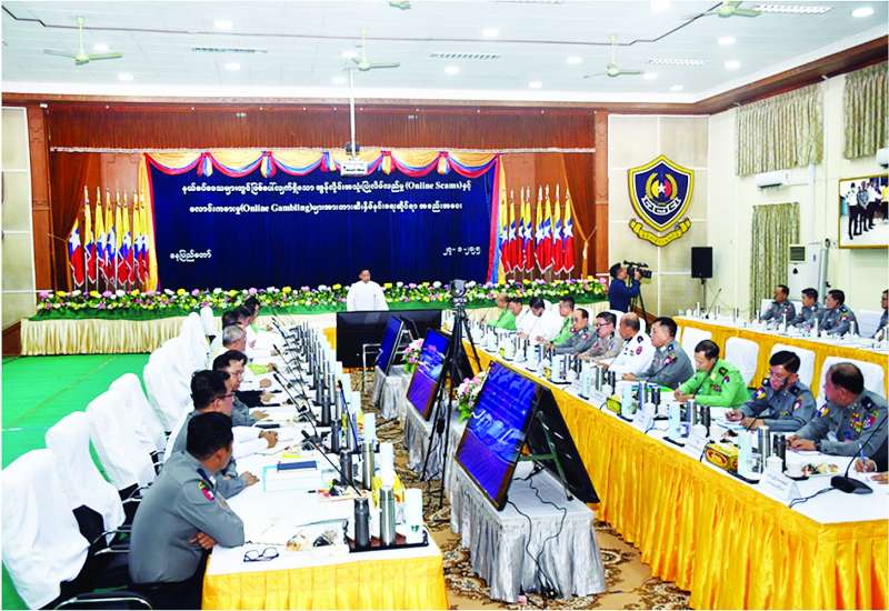 နယ်စပ်ဒေသများတွင် ဖြစ်ပေါ်လျက်ရှိသော အွန်လိုင်းအသုံးပြုလိမ်လည်မှု (Online Scam)နှင့် လောင်းကစားမှု (Online Gambling)များအား တားဆီးနှိမ်နင်းရေးဆိုင်ရာ အစည်းအဝေးကို ယနေ့မွန်းလွဲ ၁ နာရီတွင် နေပြည်တော်ရှိ မြန်မာနိုင်ငံရဲတပ်ဖွဲ့ဌာနချုပ် အရိန္ဒမာခန်းမ၌ ကျင်းပသည်။