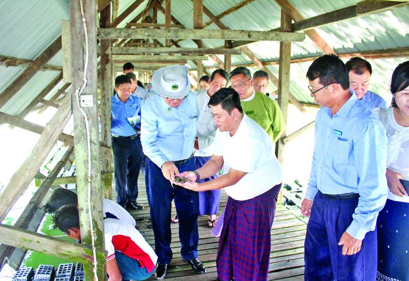 စိုက်ပျိုးရေး၊ မွေးမြူရေးနှင့်ဆည်မြောင်းဝန်ကြီးဌာန ဒုတိယဝန်ကြီး ဒေါက်တာအောင်ကြီးသည် ယမန်နေ့က ကျောက်တန်းမြို့နယ် သီတာမြိုင်ရပ်ကွက်ရှိ နေကြာပန်းကဏန်းပျော့မွေးမြူရေး ကုမ္ပဏီလီမိတက်၏ ကဏန်းပျော့မွေးမြူရေးကန် ၂၅ ကန်၌ တစ်နှစ်လျှင် ကဏန်းပျော့တန်ချိန် ၂၀၀ ခန့်ထုတ်လုပ်၍ ပြည်တွင်းရှိ ဟိုတယ်နှင့်စားသောက်ဆိုင်များသို့ တင်ပို့ဖြန့်ဖြူးရောင်းချနေမှုနှင့် စွန့်ပစ်ပစ္စည်းများဖြစ်သည့် အရေလဲထားသော ကဏန်းအရေခွံ၊ ကဏန်းအသေတို့မှ ကဏန်းအမိုင်နိုအော်ဂဲနစ် သဘာဝမြေဩဇာများ ထုတ်လုပ်နေမှုကို ကြည့်ရှုစစ်ဆေးပြီး ပုဂ္ဂလိကရင်းနှီးမြှုပ်နှံမှုနှင့် ထုတ်လုပ်မှု အရည်အသွေးမြှင့်တင်နိုင်ရေးဆိုင်ရာများကို ဆွေးနွေးမှာကြားသည်။