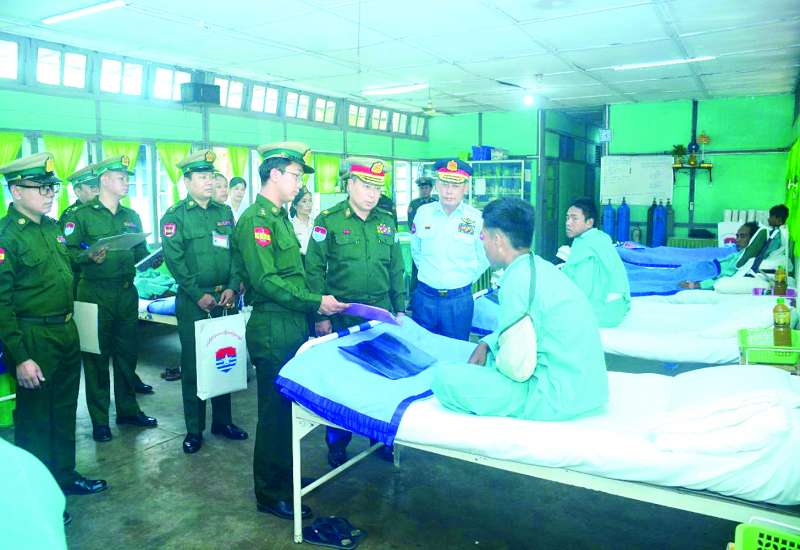 ကချင်ပြည်နယ် မြစ်ကြီးနားမြို့ရှိ တပ်မတော်ဆေးရုံ၊ တနင်္သာရီတိုင်းဒေသကြီး မြိတ်မြို့ရှိ တပ်မတော်ဆေးရုံ၊ ရန်ကုန်တိုင်းဒေသကြီး မင်္ဂလာဒုံမြို့နယ်ရှိ တပ်မတော်အရိုးရောဂါအထူးကုဆေးရုံကြီး ခုတင်-၅၀၀ နှင့် တပ်မတော်ဆေးရုံကြီး ခုတင်-၁၀၀၀ ၊ ဧရာဝတီတိုင်းဒေသကြီး ပုသိမ်မြို့ရှိ နယ်မြေခံဆေးတပ်ရင်းတို့၌ တက်ရောက်ကုသမှုခံယူလျက်ရှိသော အရာရှိ၊ စစ်သည်၊ မိသားစုများ၊ မြန်မာနိုင်ငံရဲတပ်ဖွဲ့ဝင်များနှင့် ဒေသခံပြည်သူများအား ယနေ့တွင် သက်ဆိုင်ရာတိုင်းစစ်ဌာနချုပ်များမှ တိုင်းမှူးများနှင့် တာဝန်ရှိသူများက သွားရောက်ကြည့်ရှု၍ တစ်ဦးချင်း၏ ရောဂါဖြစ်ပွားမှု၊ ဆေးဝါးကုသပေးထားမှုနှင့် ကျန်းမာရေးတိုးတက်ကောင်းမွန်မှုအခြေအနေများကို မေးမြန်းအားပေးစကားပြောကြားပြီး အာဟာရဖြည့်စားသောက်ဖွယ်ရာများနှင့် ချီးမြှင့်ငွေများ ပေးအပ်သည်။