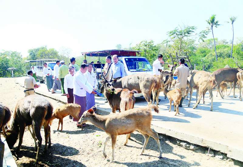 သယံဇာတနှင့်သဘာဝပတ်ဝန်းကျင်ထိန်းသိမ်းရေးဝန်ကြီးဌာန ပြည်ထောင်စုဝန်ကြီး ဦးခင်မောင်ရီသည် ယနေ့မွန်းလွဲပိုင်းတွင် တာဝန်ရှိသူများနှင့်အတူ နေပြည်တော် ဇေယျာသီရိမြို့နယ်ရှိ သစ်တောသုတေသနဌာန (ရေဆင်း) ဧည့်ရိပ်သာဆောင် ပြန်လည်ပြုပြင်ဆောင်ရွက်နေမှု ကြည့်ရှုစစ်ဆေးသည်။