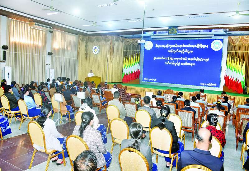 ဥပဒေအသိပညာပြန့်ပွားရေးသင်တန်း အမှတ်စဉ် (၅/၂၀၂၅) ဖွင့်ပွဲအခမ်းအနားကို ယနေ့နံနက် ၉ နာရီခွဲက နေပြည်တော်ရှိ စီးပွားရေးနှင့်ကူးသန်းရောင်းဝယ်ရေးဝန်ကြီးဌာန အစည်းအဝေးခန်းမ (၂) ၌ ကျင်းပရာ စီးပွားရေးနှင့်ကူးသန်းရောင်းဝယ်ရေးဝန်ကြီးဌာန ပြည်ထောင်စုဝန်ကြီး ဦးထွန်းအုံ၊ ဌာနဆိုင်ရာအကြီးအကဲများ၊ တာဝန်ရှိသူများ၊ သင်တန်းနည်းပြများနှင့် သင်တန်းသား သင်တန်းသူများ တက်ရောက်ကြသည်။