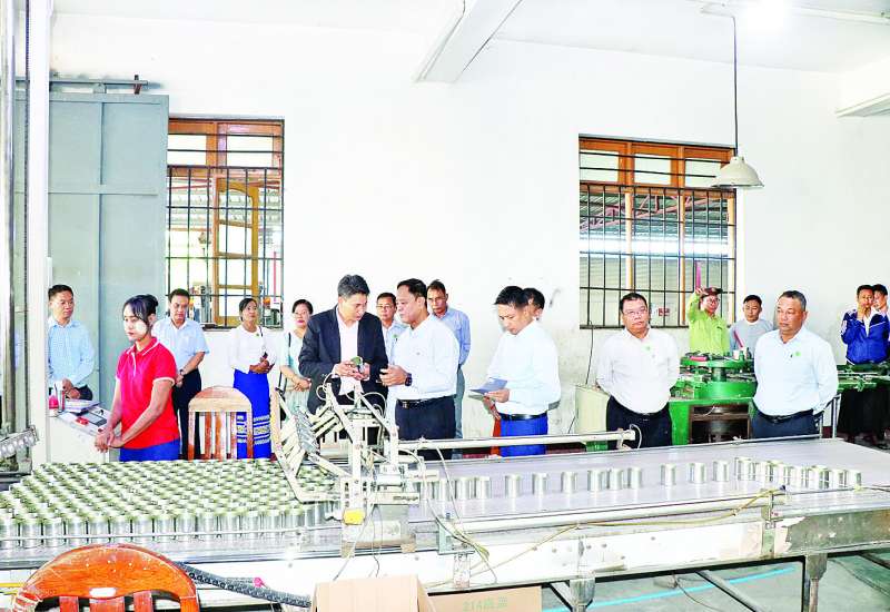 သမဝါယမနှင့်ကျေးလက်ဖွံ့ဖြိုးရေးဝန်ကြီးဌာန ပြည်ထောင်စုဝန်ကြီး ဦးလှမိုးသည် ယနေ့နံနက်ပိုင်းက လှိုင်သာယာမြို့နယ် ရွှေလင်ပန်းစက်မှုဇုန်ရှိ Wei Wang (ဝေ့ဝမ်) ပဲငံပြာရည်နှင့် နို့ဆီဘူး၊ နို့စိမ်းဘူး၊ အသားဘူးခွံထုတ်လုပ်မှု စက်ရုံနှင့်အင်းစိန်မြို့နယ်ရှိ သီရိစန္ဒာအထည်ချုပ်နှင့် အထွေထွေရောင်းဝယ်ရေး သမဝါယမအသင်းလီမိတက်၏ အထည်ချုပ်စက်ရုံသို့ ကွင်းဆင်းကြည့်ရှုစစ်ဆေးသည်။