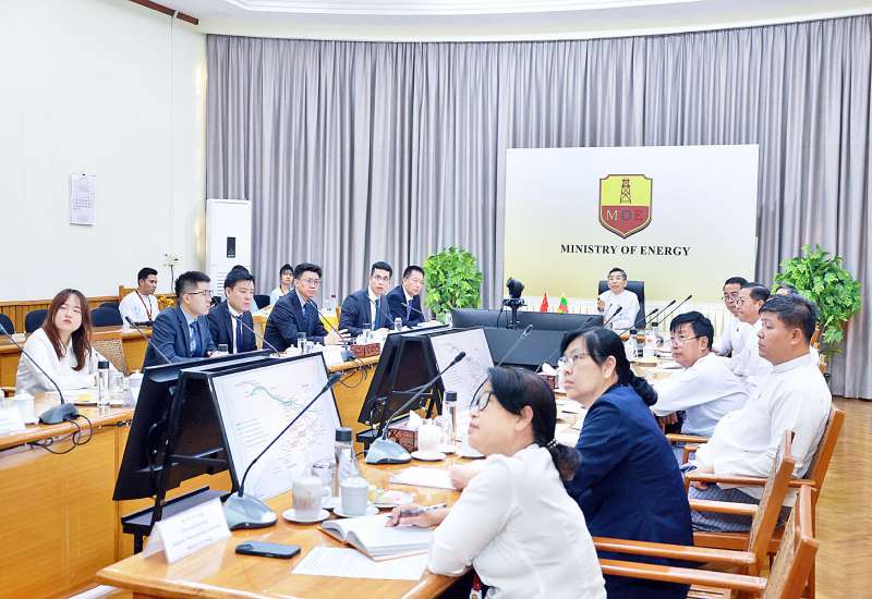 စွမ်းအင်ဝန်ကြီးဌာန ပြည်ထောင်စုဝန်ကြီး ဦးကိုကိုလွင်သည် ဒုတိယဝန်ကြီးဦးသန့်စင်၊ တာဝန်ရှိသူများနှင့်အတူ South-East Asia Crude Oil Pipeline နှင့်Gas Pipeline ကုမ္ပဏီများ၏ဥက္ကဋ္ဌ Mr. Wang Qiang ဦးဆောင်သည့်အဖွဲ့အား ယနေ့ညနေပိုင်းတွင် စွမ်းအင်ဝန်ကြီးဌာန၌ တွေ့ဆုံသည်။