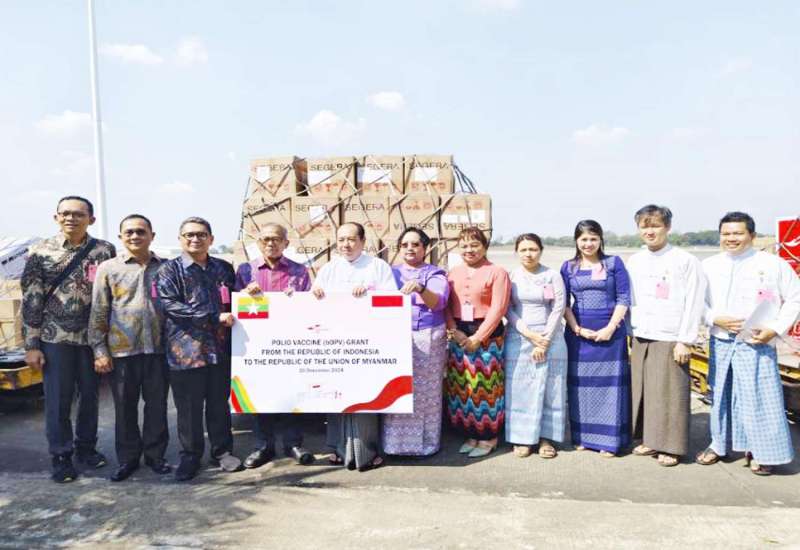 အင်ဒိုနီးရှားသမ္မတနိုင်ငံအစိုးရက မြန်မာနိုင်ငံသို့လှူဒါန်းသည့် အင်ဒိုနီးရှားရူပီယာ ၈ ဒသမ ၇ ဘီလီယံတန်ဖိုးရှိ ပိုလီယိုရောဂါကာကွယ်ဆေး (bOPV) ၂ ဒသမ ၇၁၆ သန်း doses သည် ယနေ့နံနက် ၉ နာရီခွဲတွင် လေကြောင်းခရီးစဉ်ဖြင့် ရန်ကုန်အပြည်ပြည်ဆိုင်ရာလေဆိပ်သို့ ရောက်ရှိလာသည်။