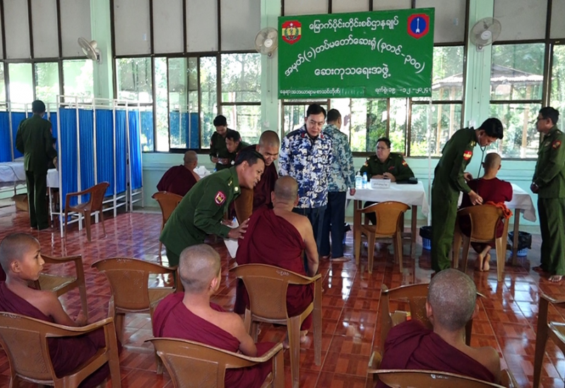 ကချင်ပြည်နယ်၊ မြစ်ကြီးနားမြို့ပေါ်ရှိ သံဃာတော်များအား ယနေ့နံနက်ပိုင်းတွင် မြောက်ပိုင်းတိုင်းစစ်ဌာနချုပ်၊ နယ်လှည့်ဆေးကုသရေးအဖွဲ့က အဆိုပါမြို့ရှိ အဘယာရာမပရိယတ္တိစာသင်တိုက်၌ ကျန်းမာရေးစောင့်ရှောက်မှုလုပ်ငန်းများ ဆောင်ရွက်ပေးသည်။