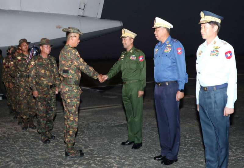 ဖိလစ်ပိုင်နိုင်ငံတွင် နိုဝင်ဘာ၁၂ ရက်မှ ၂၃ ရက်ထိကျင်းပခဲ့သည့် (၃၂)ကြိမ်မြောက် အာဆီယံနိုင်ငံတပ်မတော်(ကြည်း)များ သေနတ်ပစ်ပြိုင်ပွဲ (32nd ASEAN Armies Rifle Meet - 32nd AARM)ကို ဝင်ရောက်ယှဉ်ပြိုင်ခဲ့သည့် မြန်မာ့တပ်မတော်သေနတ်ပစ်အသင်းသည် ယနေ့ညပိုင်းတွင် နေပြည်တော်လေဆိပ်သို့ ပြန်လည်ရောက်ရှိရာ လေဆိပ်တွင် ကာကွယ်ရေးဦးစီးချုပ်ရုံး(ကြည်း)မှ ဒုတိယဗိုလ်ချုပ်ကြီး ထိန်ဝင်း၊ စစ်ဦးစီအရာရှိချုပ်(ရေ) ဒုတိယဗိုလ်ချုပ်ကြီး အေးမင်းထွေး၊ စစ်ဦးစီးအရာရှိချုပ်(လေ) ဒုတိယဗိုလ်ချုပ်ကြီး ဇော်ဝင်းမြင့်နှင့် တပ်မတော်အရာရှိကြီးများက လေဆိပ်၌ ကြိုဆိုနှုတ်ဆက်ကြသည်။