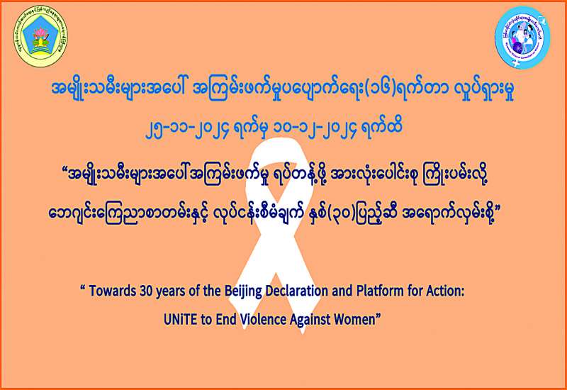 အမျိုးသမီးများအပေါ် အကြမ်းဖက်မှုပပျောက်ရေး (၁၆)ရက်တာ လှုပ်ရှားမှု ၂၅-၁၁-၂၀၂၄ ရက်မှ ၁၀-၁၂-၂၀၂၄ ရက်ထိ