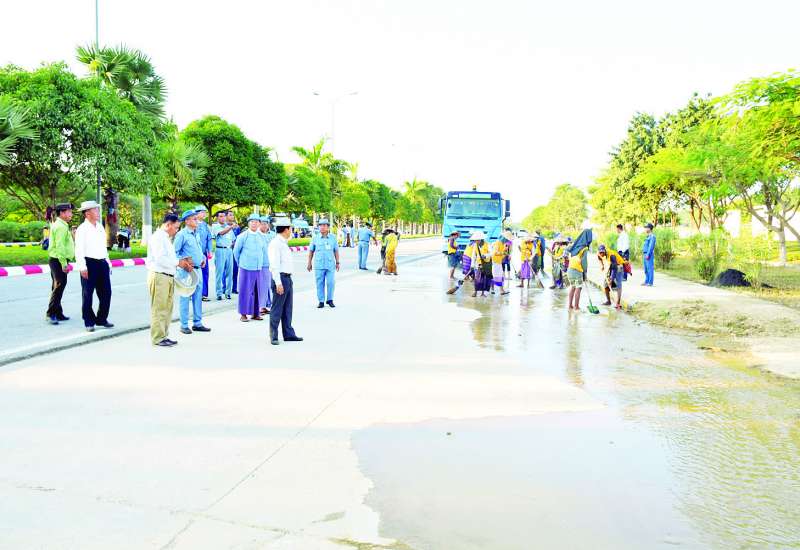 နေပြည်တော်ကောင်စီဥက္ကဋ္ဌ ဦးသန်းထွန်းဦးသည် နေပြည်တော်ကောင်စီဝင်များနှင့်အတူ ယနေ့မွန်းလွဲပိုင်းတွင် လယ်ဝေးမြို့နယ် အလယ်ကျွန်းကျေးရွာအုပ်စု တံတားကြီးကျေးရွာအတွင်း ရေဝပ်မှုမရှိစေရေး၊ ရေစီးရေလာကောင်းမွန်စေရေးအတွက် နေပြည်တော်ဆည်မြောင်းနှင့် ရေအသုံးချမှုစီမံခန့်ခွဲရေးဦးစီးဌာန(တည်ဆောက်ရေး-၅)မှ ဆောင်ရွက်သည့် ကျေးရွာရေဆိုးထုတ်မြောင်း ဆောင်ရွက်ပြီးစီးမှုကို ကြည့်ရှုစစ်ဆေးသည်။