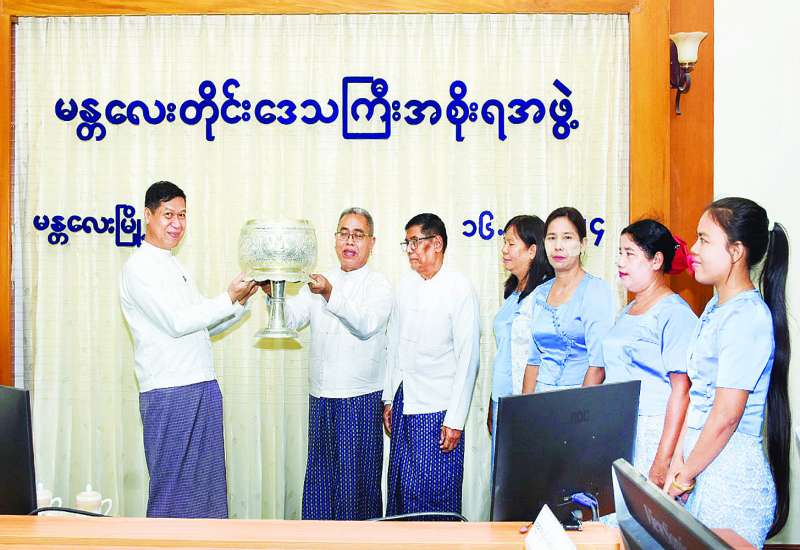 ပြည်ထောင်စုနယ်မြေ နေပြည်တော် ဒက္ခိဏသီရိမြို့နယ် ဗုဒ္ဓဥယျာဉ်တော် ဝတ္ထုကံတော်အတွင်းရှိ မာရဝိဇယဗုဒ္ဓရုပ်ပွားတော်မြတ်ကြီးအား မသိုးရွှေကြာသင်္ကန်းတော် ရက်လုပ်ပူဇော်ပွဲပြိုင်ပွဲတွင် ပထမဆုရရှိခဲ့သည့် မန္တလေးတိုင်းဒေသကြီးကိုယ်စား ပြုဝင်ရောက်ယှဉ်ပြိုင်ခဲ့ရာ ပထမဆုရရှိခဲ့သည့်အမရ ရွှေပြည်ရက်ကန်းအဖွဲ့အား မန္တလေးတိုင်းဒေသကြီး အစိုးရအဖွဲ့က ဂုဏ်ပြုသည့်အခမ်းအနားကို ယနေ့နံနက်ပိုင်းက တိုင်းဒေသကြီးအစိုးရအဖွဲ့ရုံးအစည်းအဝေးခန်းမ၌ကျင်းပရာ တိုင်းဒေသကြီး ဝန်ကြီးချုပ်ဦးမျိုးအောင်နှင့် တိုင်းဒေသကြီးဝန်ကြီးများ၊ တာဝန်ရှိသူများ တက်ရောက်သည်။
