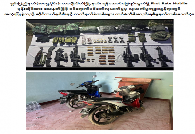 ၂၀၂၄ ခုနှစ်၊ နိုဝင်ဘာလ ၁၃ ရက်နေ့ နံနက် ၁၀ နာရီ ၄၅ မိနစ်တွင် ရှမ်းပြည်နယ် (အရှေ့ပိုင်း)၊ တာချီလိတ်မြို့နယ်၊ ရန်အောင်မြေရပ်ကွက်၊ ဗိုလ်ချုပ်လမ်းမဘေးရှိ First Rate Mobile ဖုန်းဆိုင်သို့ အမျိုးသား ၄ ဦး (စိစစ်ဆဲ) က သေနတ်များကိုင်ဆောင်ဝင်ရောက်လာပြီး ဆိုင်ဝန်ထမ်းတစ်ဦးအား သေနတ်ဖြင့် ပစ်ခတ်သတ်ဖြတ်၍ ဆိုင်အတွင်းရှိ iPhone အမျိုးအစား လက်ကိုင်ဖုန်း ၂၀ လုံး၊ တန်ဘိုးငွေ ၁၁၂၁ သိန်းကျပ်ခန့်အား လုယက်ယူဆောင်ထွက်ပြေးသွားခဲ့သဖြင့် တာချီလိတ် မြို့မရဲစခန်းတွင် အမှုဖွင့်လှစ်ကာ တရားခံများဖမ်းဆီးရမိနိုင်ရေး လုံခြုံရေးတပ်ဖွဲ့ဝင်များက လုယက်မှုကျူးလွန်သူတရားခံများ ခိုအောင်းရောက်ရှိနေထိုင်လျက်ရှိသည့် အငှားနေအိမ်လိုင်းခန်းသို့ ဝင်ရောက်စီးနင်းရှာဖွေခဲ့ရာ တရားခံများက သေနတ်များဖြင့် စတင်ပစ်ခတ်ကာ ထွက်ပြေးရန် ကြိုးစားသဖြင့် ပြန်လည်ခုခံပစ်ခတ်ဖမ်းဆီးခဲ့ရာ လုယက်မှုကျူးလွန်ခဲ့သူ တရားခံ ဖန်လီ(၃၄)နှစ် (ဘ)ဦးဖန်ကျင်းလျှမ်ပါ အမျိုးသား ၄ ဦးအား လုယက်မှုကျူးလွန်စဉ် အသုံးပြုခဲ့သည့် ပစ္စတိုသေနတ် ၄ လက်နှင့် ဆက်စပ်ပစ္စည်းများ၊ မော်တော်ယာဉ်တစ်စီး၊ လုယက်မှုကျူးလွန်ရာမှ ရရှိသည့် လက်ကိုင်ဖုန်း ၁၂ လုံးတို့နှင့်အတူ အသေပစ်ခတ်ဖမ်းဆီးရမိခဲ့ကြောင်း နိုဝင်ဘာလ ၁၅ ရက်နေ့ ထုတ်နိုင်ငံပိုင်သတင်းစာများ၌ သတင်းထုတ်ပြန်ပြီးဖြစ်ပါသည်။